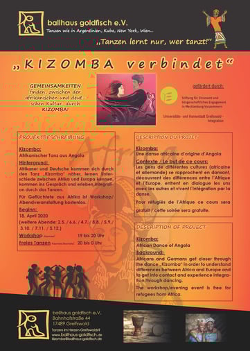 Am 4. Juli startete, aufgrund der aktuellen Hygiene-Auflagen in abgewandelter Form, im Ballhaus Goldfisch e.V. das Projekt "Kizomba verbindet". Tänzerinnen und Tänzer aus Europa und Afrika erlernten die